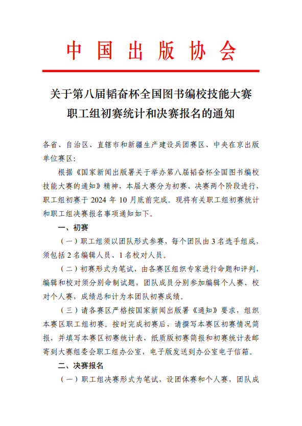关于第八届韬奋杯全国图书编校技能大赛职工组初赛统计和决赛报名的通知