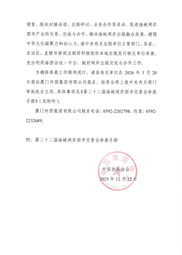 20251212关于赴台参加第二十二届海峡两岸图书交易会的通知